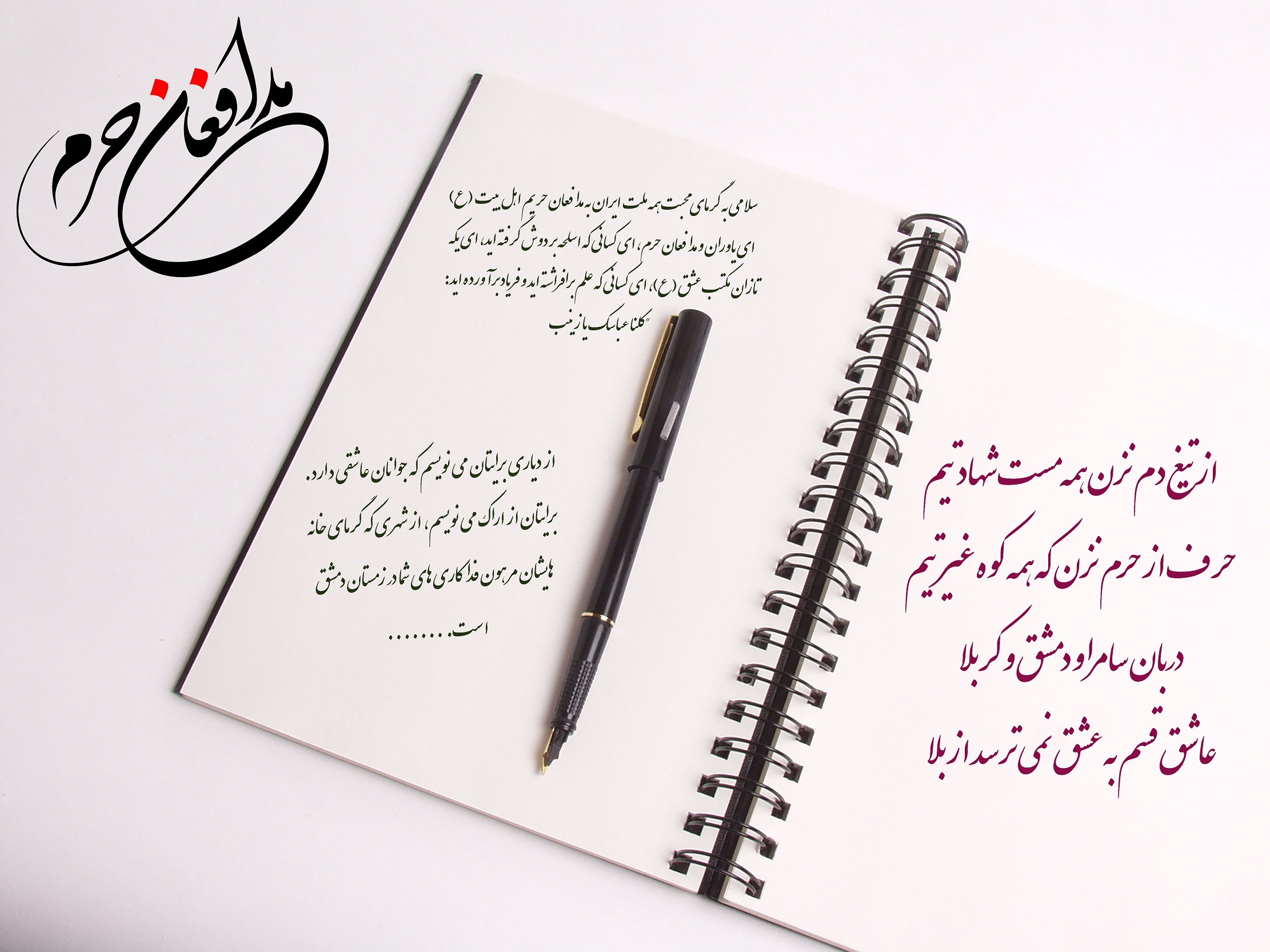 ای یاوران و مدافعان حرم، ای کسانی که اسلحه بر دوش گرفته اید، ای یکه تازان مکتب عشق (ع)، ای کسانی که علم برافراشته اید و فریاد برآورده اید:"کلنا عباسک یا زینب". از دیاری برایتان می نویسم که جوانان عاشقی دارد. برایتان از اراک می نویسم، از شهری که گرمای خانههایشان مرهون فداکاریهای شما در زمستان دمشق است. خدا می داند که حال امروز همهی ما غم دوری از صحنهی نبرد است، خدا میداند که با تمام وجود آرزو داریم در کنار شما برای دفاع از حرم، اسلحه به دست بگیریم! حسرت این روزهای ما شده "یا لیتنا کنا معک"! برایتان از آرامشی مینویسم که شما با دلاوریهایتان به ارمغان آوردهاید، برای گفتن از دلاوریها و رشادتهایتان زبان قاصر است. این سلاحی را که امروز به دست گرفتهاید همان سلاح امام حسین (ع) و اصحاب اوست در روز عاشورا. و آن علم همان علم افتاده از دست عباس بن علی است، این سلاح، سلاح علی اکبر است، سلاح قاسم، سلاح حبیب بن مظاهر و... همان علمی که عصر عاشورا علمدارش زینب (س) شد. و حال این سلاح به دست شما رسیده است تا با آن به خونخواهی از حسین (ع) و تمامی مظلومان جهان برخیزید و سر از تن کفر جدا کنید. و شما چه خوب برافراشته نگه داشته اید این علم را! و چه خوب حقش را ادا کردهاید و نوای لبیک سر دادهاید. دعای هر روز و هر شب ما پیروزی شماست بر کفر، و قدر دان زحمات شما هستیم، هدایای ناقابلی جمع کردهایم که امیدواریم در این روزهای سرد دمشق گرمای عشق این مردم به حرم عمه سادات را در وجودتان بدمد.با آرزوی نابودی کفار و پیروزی شما!