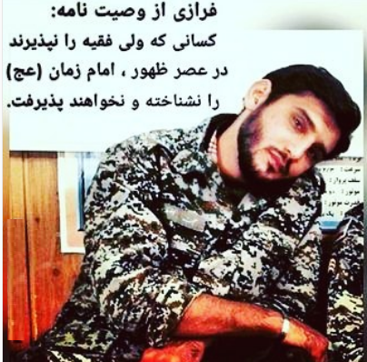 ای به فدای لبخندت ، ای تمنای چشمان خسته ام ، امروز بار دیگر با تو عهد میبندم که تا خون در رگ هایم میجوشد ، آماده ی تقدیم سرم در راه شما هستم!