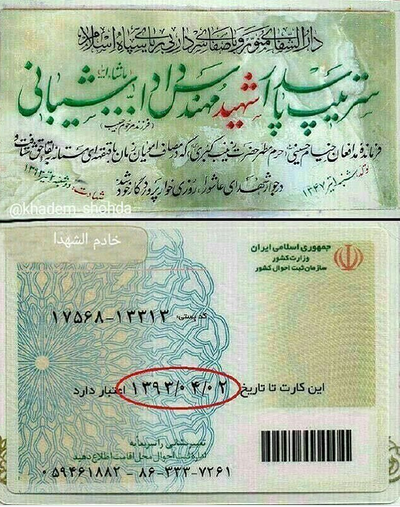 تاریخ انقضای کارت ملی شهید: ۲تیر93