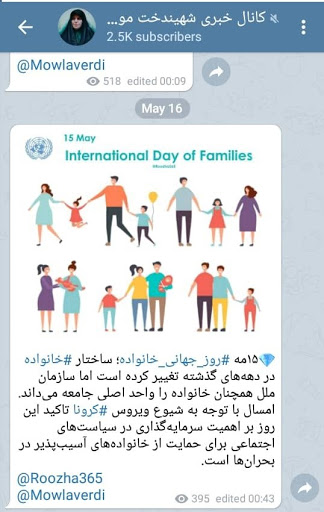 15 مه روز جهانی خانواده مقدمه ای شد که خانم مولاوردی مشاور آقای روحانی با اعلام تغییر ساختار خانواده عکسی با دونماد هم جنس بازی را بعنوان ساختارهای متفاوت خانواده منتشر نماید.
